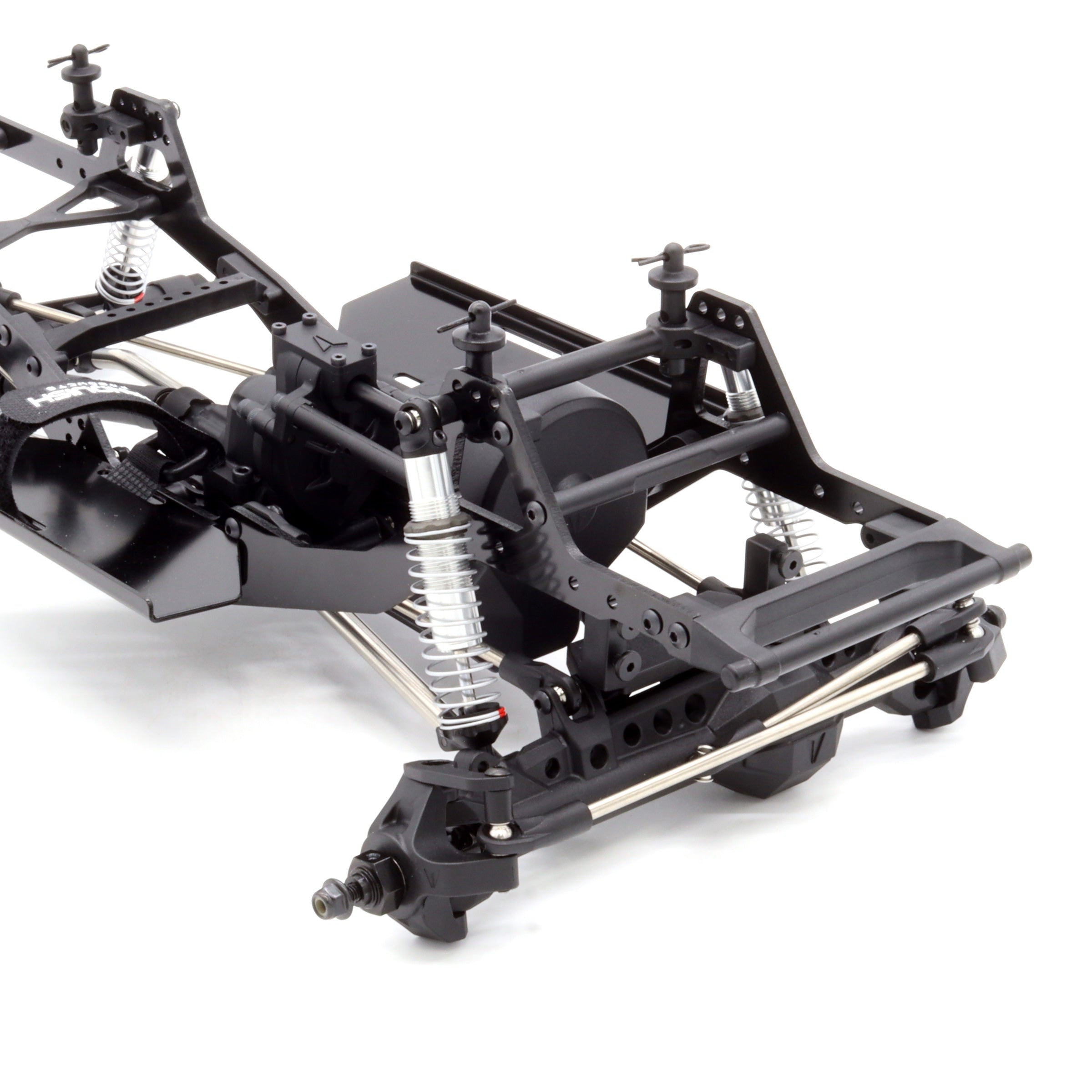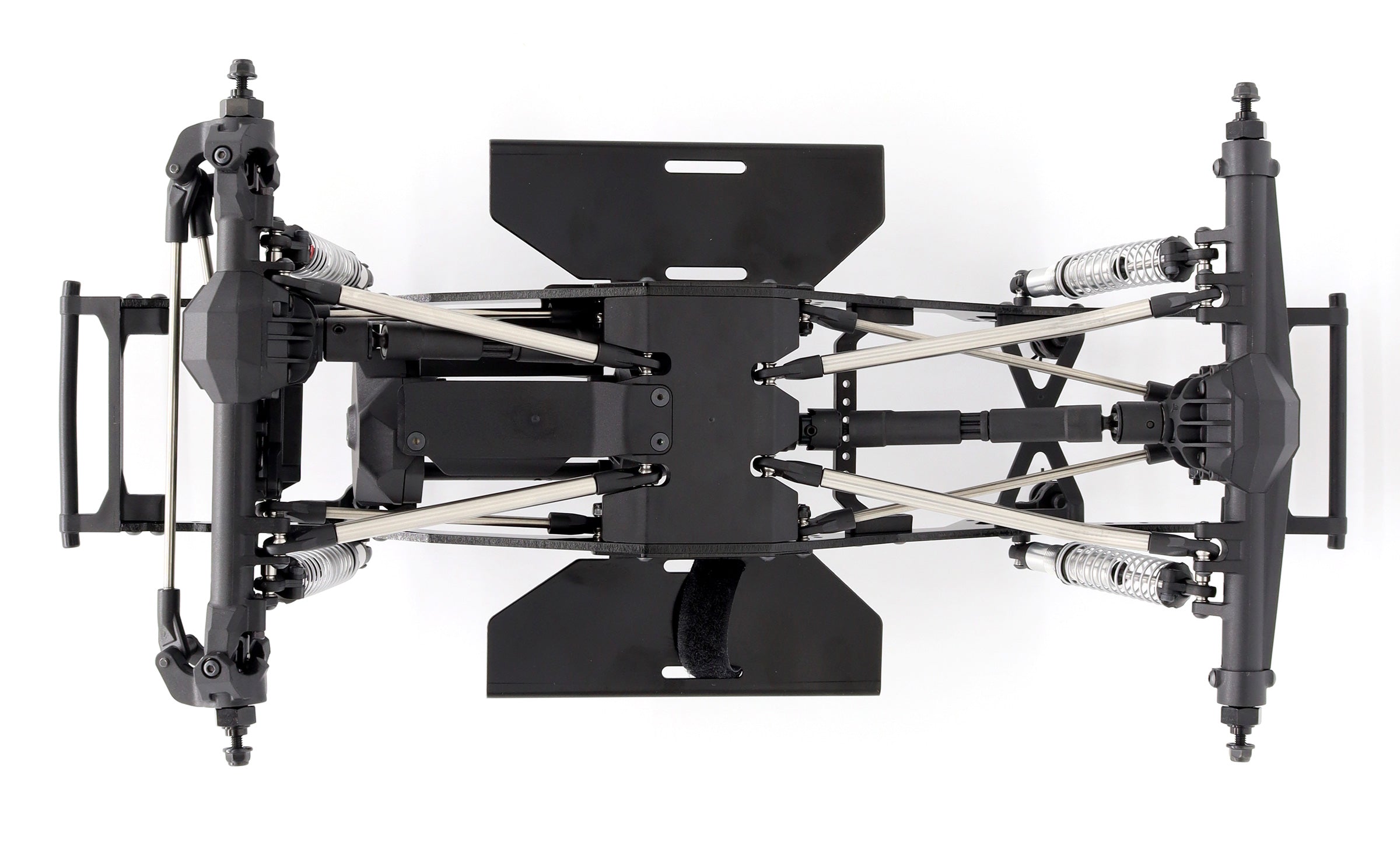 The VRD Builders Kit includes the Incision 90mm S8E shocks with aluminum shock bodies. Heavy duty stainless steel lower suspension links and lightweight upper links connect the chassis to the axles with the Incision M4 rod ends. The rear lower links are bent for maximum breakover clearance. Multiple shock mounting locations and tunable shock length allow for a high range of ride height and breakover adjustments.