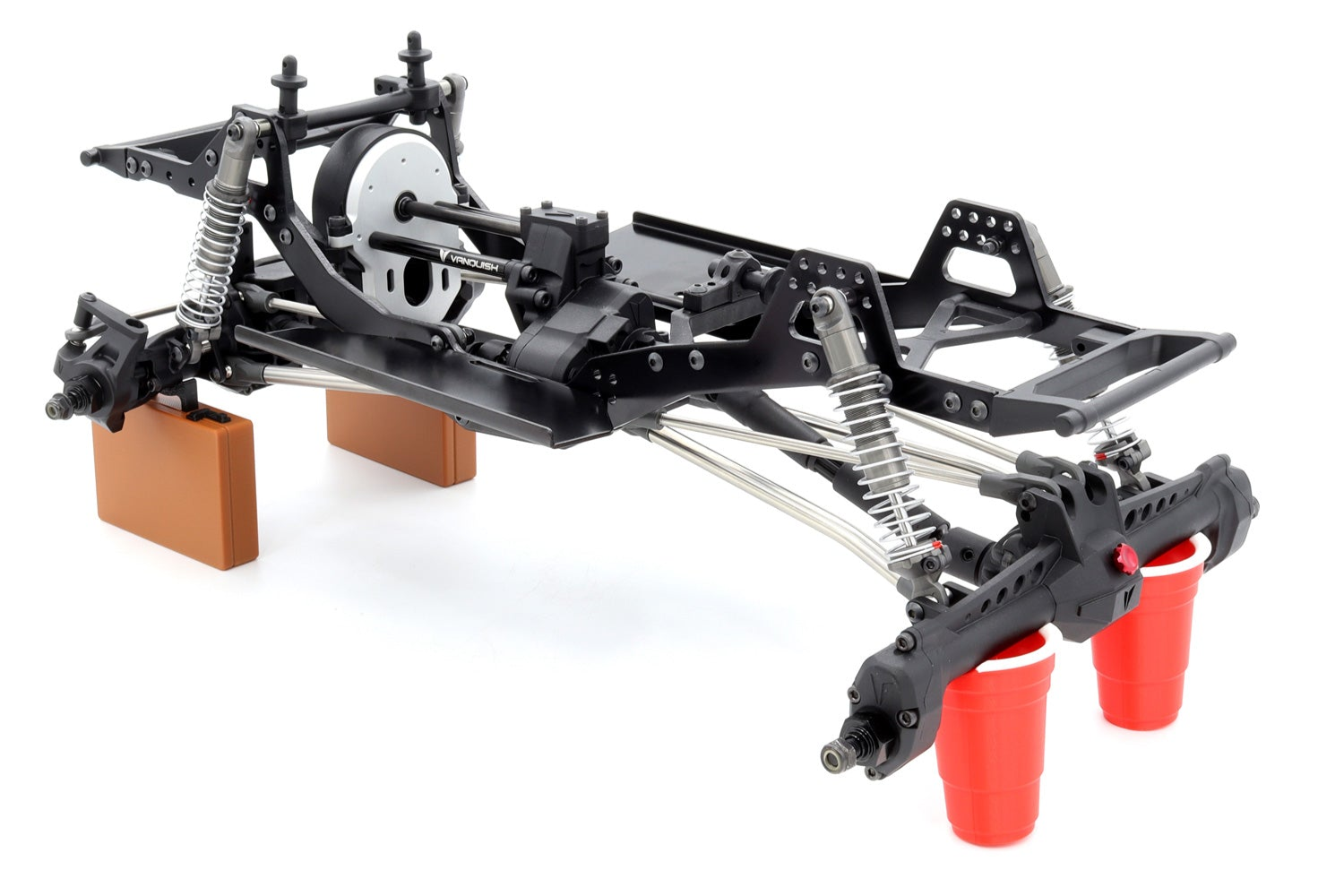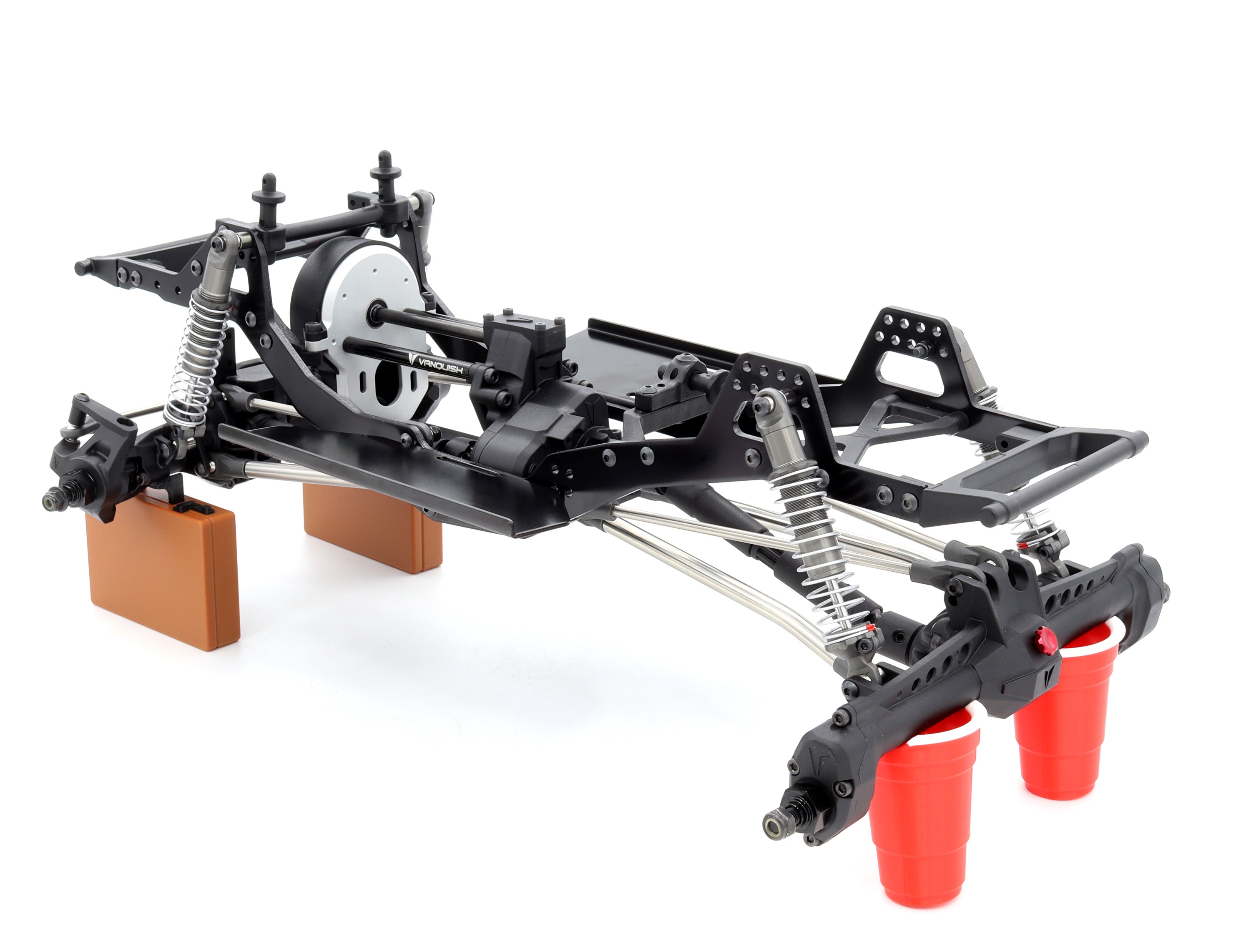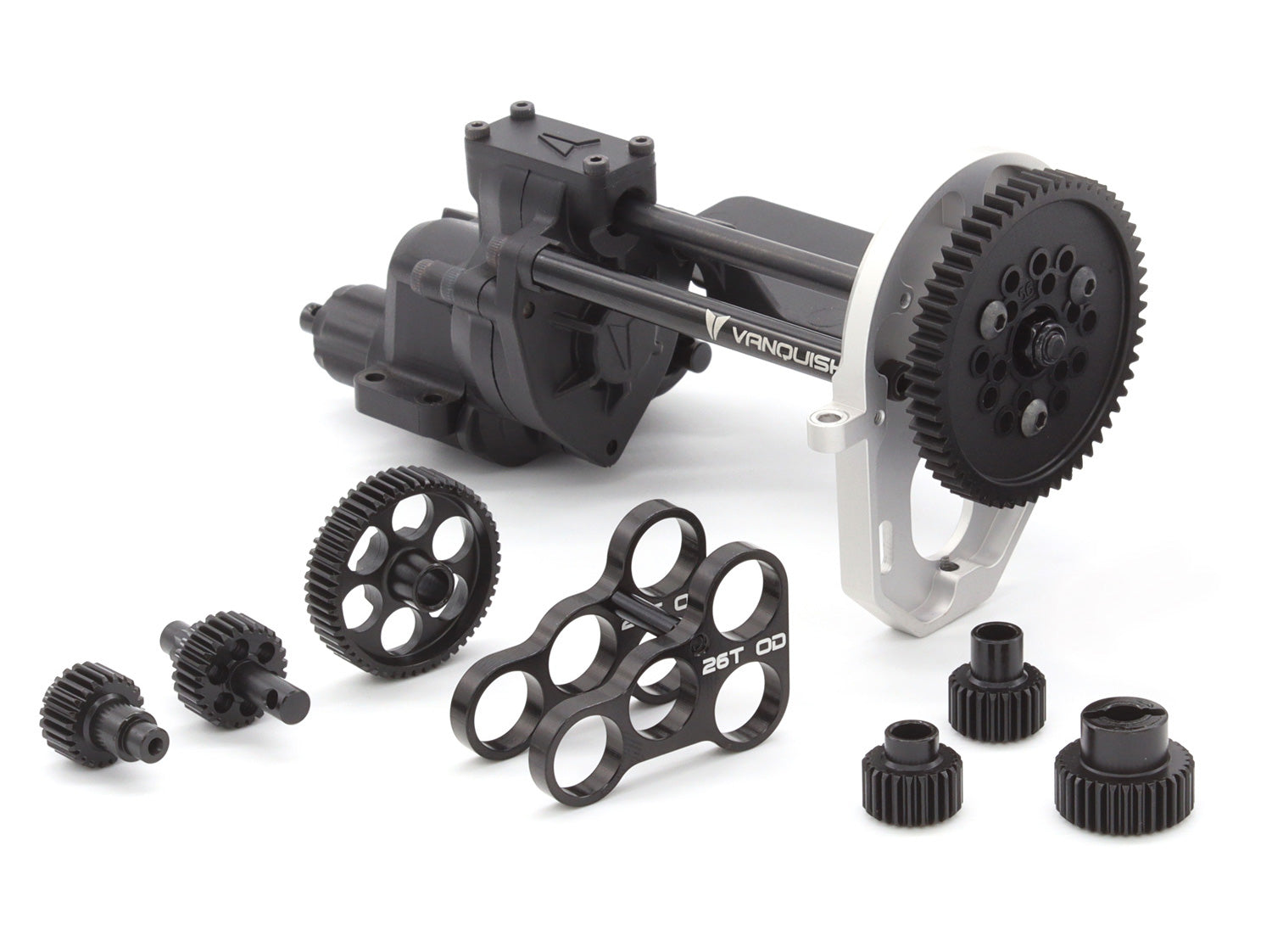 The VRD Mullet Kit includes the Vanquish Products VFD transmission with a F10 Straight front axle and a F10 Portal rear axle. The combination of the F10 Portal and Straight axles delivers a unique experience which blends the low COG of a straight axle with the added clearance of the portal. Aim the front axle exactly where you need it while knowing the added clearance in the back won't stop your progress. The Carbon Spec VFD gives you an upgraded building experience with machined motor motorplate, standoffs and light weight gears.